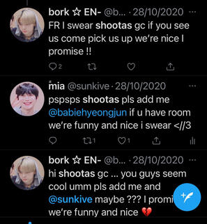 here's a few ss of one of our first interactions when we kept trying (but failed) to get into shootas <3